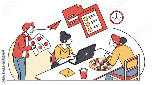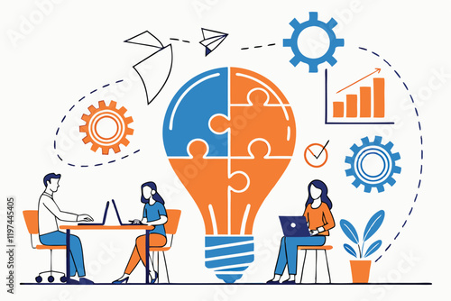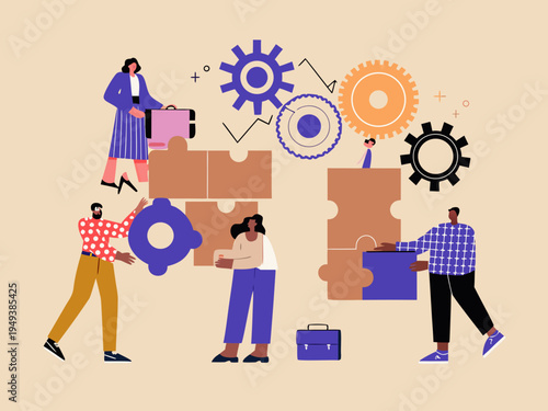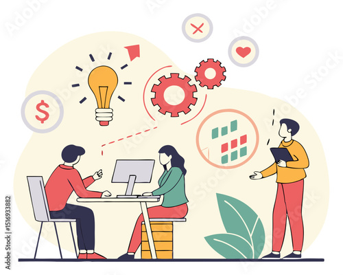 Крошечные персонажи, офисные люди, упаковывающие огромный портфель с целью, снаряжением, лампочкой, диаграммами, поднятыми большими пальцами, символами сообщений электронной почты, плоской векторной иллюстрацией. Концепция опыта работы в деловом офисе.