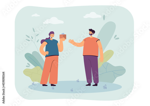 Офисные люди мужчина и женщина, держащие лампочку вместе в обеих руках, векторная плоская иллюстрация. Генерация бизнес-идей, инновации, командная работа, концепция совместной работы для веб-баннера, страницы веб-сайта и т.д.