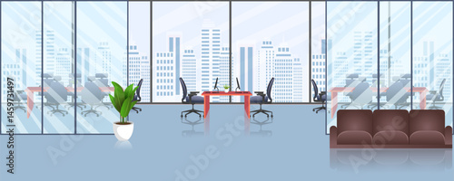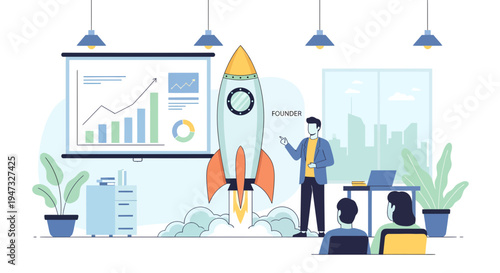 Векторная иллюстрация концепции презентации офиса в плоском стиле. Деловые люди на рабочих местах, проводят презентацию, служба доставки воды.