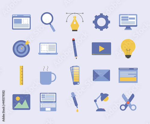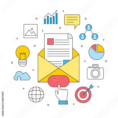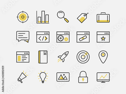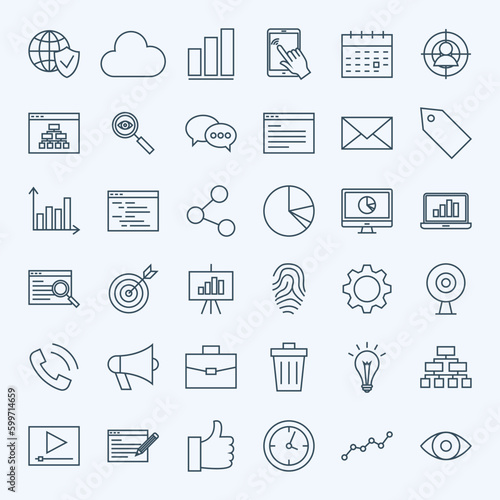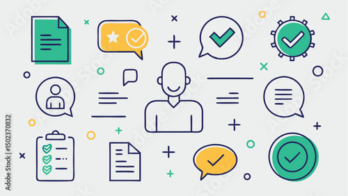 Бесшовный узор офисной команды. Векторный современный плоский дизайн тонкой линии с символами командной работы в бизнесе.