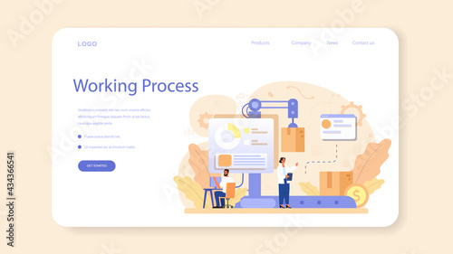 Офисный векторный шаблон веб-сайта, дизайн веб-страницы и целевой страницы для разработки веб-сайтов и мобильных сайтов. Управление бизнес-процессами, офисные ситуации, концепции анализа данных.