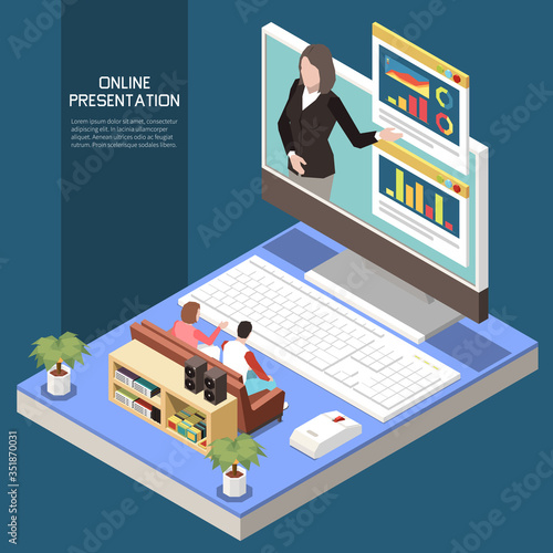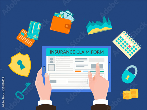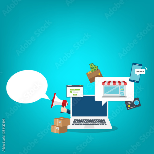 Векторная плоская иллюстрация офисной работы. Ноутбук с картой мира на экране, кактус, чашка чая, настольная лампа, папки, часы, бумажные деньги и рука с долларовой монетой. Офисное рабочее место, плакат рабочего пространства, баннер