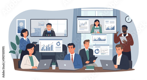 Офис, работающий в комнате охраны, векторный значок, изолированный на белом фоне