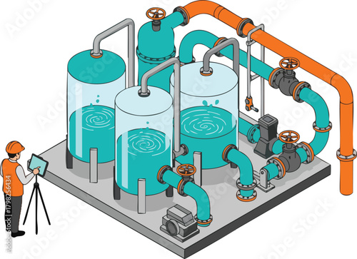 Векторная концептуальная иллюстрация законодательства и нормативных актов в области нефти и газа. Изометрические нефтяные бочки, насос на книге законов, весы правосудия, молоток судьи. Закон о добыче нефти.