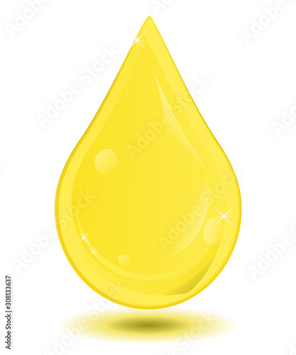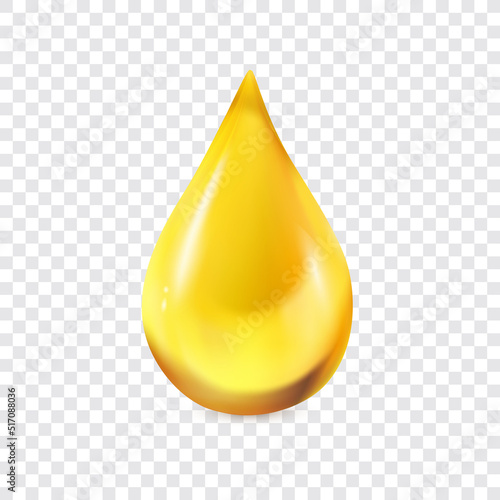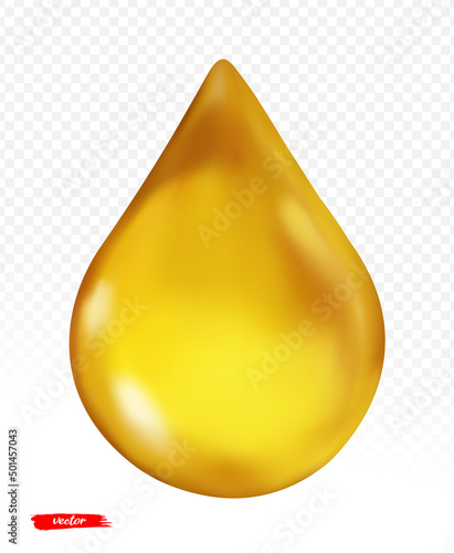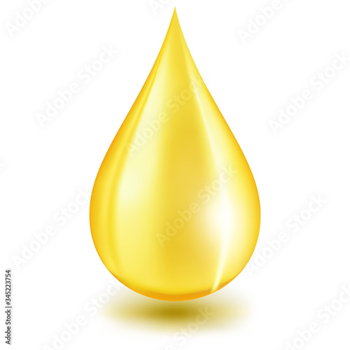 Вектор масляных капель. Значок капли жидкости. Золотая капля меда, выделенная на белом фоне. Реалистичный золотистый органический косметический лубрикант, падающий