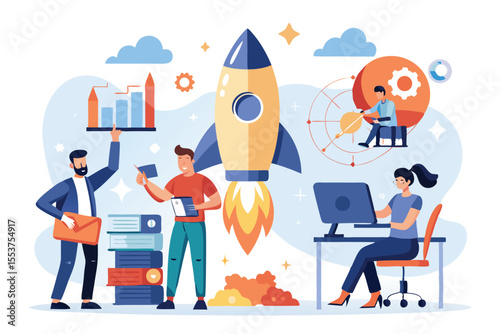 Насосный домкрат, извлекающий сырую нефть из нефтяной скважины, мужские персонажи, работающие на трубопроводе, векторная иллюстрация. Добыча и транспортировка нефти, концепция трубопроводной отрасли для страницы веб-сайта и т.д.