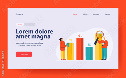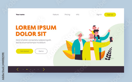 Шаблон веб-сайта целевой страницы для пожилых путешественников. Векторная иллюстрация пожилой пары с багажом, фотоаппаратом, билетами. Пожилые мужчина и женщина, путешествующие вместе.