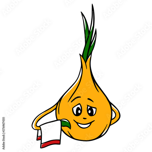 Векторный значок персонажа супергероя луковой луковицы, изолированный на белом фоне.