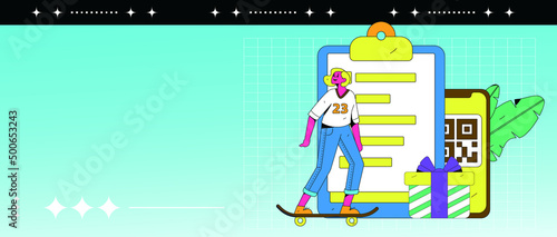 Онлайн-бронирование билетов на самолет. Векторная иллюстрация концепции путешествия. Сообщения и уведомления на экране мобильного телефона. Приложение для путешествий на смартфоне.