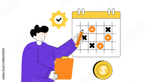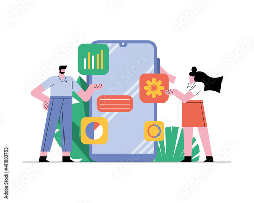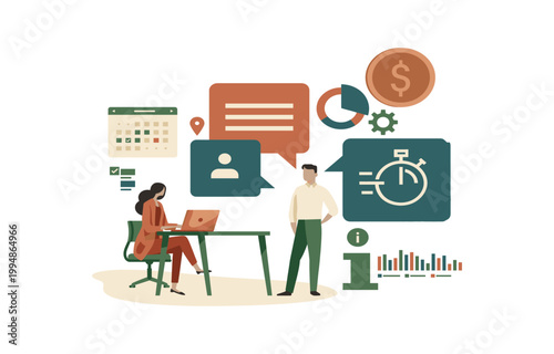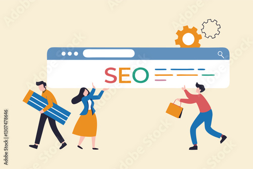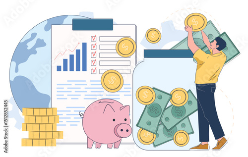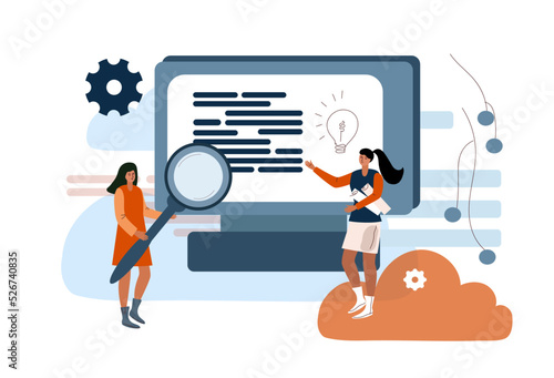 Микро-мужские и женские персонажи, использующие огромный настольный компьютер для онлайн-перевода денег с банковского счета, векторная иллюстрация дизайна в плоском стиле. Концепция онлайн-банкинга для веб-баннера, страницы веб-сайта и т.Д