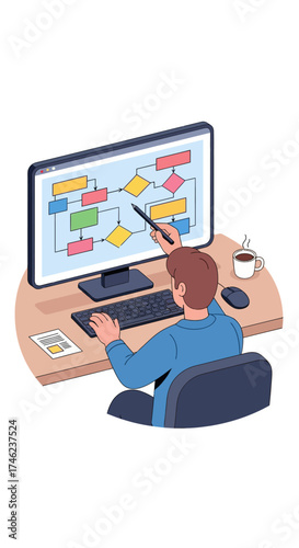 Интернет-магазин косметики и косметических средств, векторная плоская иллюстрация. Женщина покупает маску для лица, крем, патчи для глаз, тушь для ресниц, массажер для лица. Средства по уходу за кожей и косметические товары онлайн, электронная коммерция.