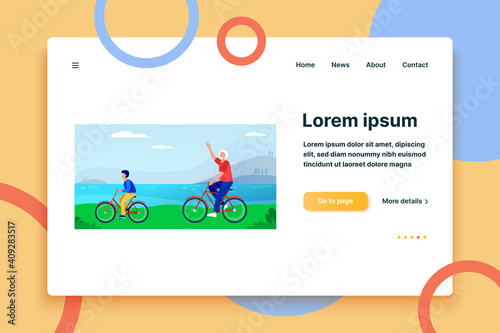 Векторный набор горизонтальных баннеров концепции онлайн-покупок велосипедов. Выберите велосипед, совершите покупку онлайн, получите шаблоны вашего велосипеда с изометрическим ноутбуком, кредитной картой и картой с велосипедами и местом для текста.