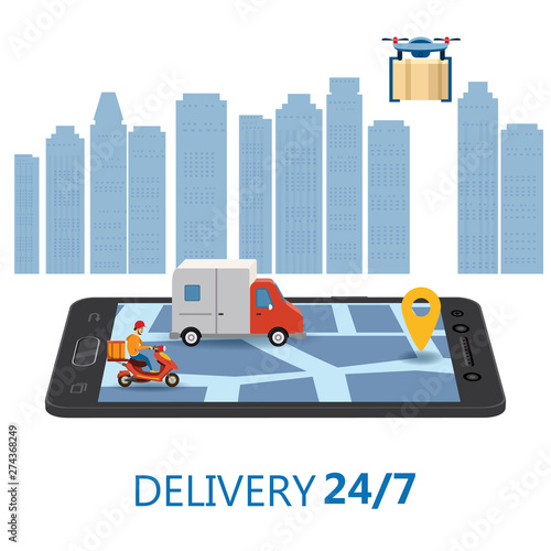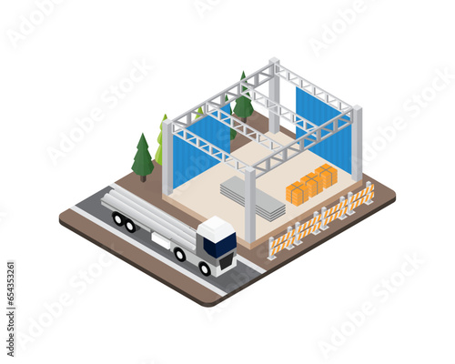 Векторная изометрическая иллюстрация концепции онлайн-проката автомобилей. Смартфон с надписью "Автомобиль, прицеп", "арендовать автомобиль" и кнопкой "Арендовать сейчас". Шаблон дизайна мобильного приложения.