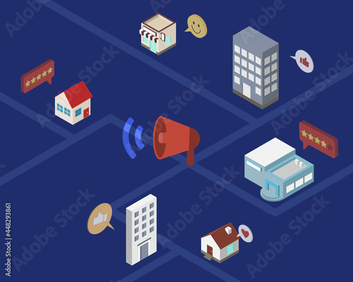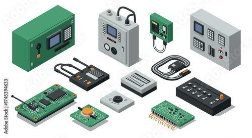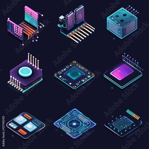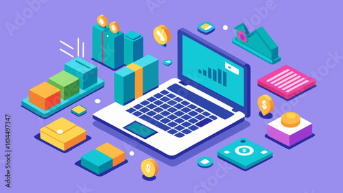 Векторная иллюстрация концепции онлайн-казино. Изометрическое компьютерное оборудование, смартфон, игровые фишки и пачки банкнот.