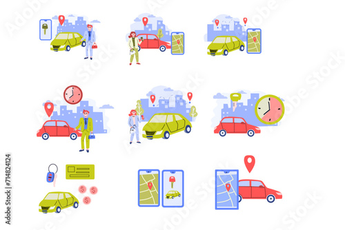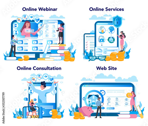 Набор для азартных игр в онлайн-казино, векторная иллюстрация, изолированная на белом фоне. Люди, играющие в игровые автоматы онлайн, покер, рулетку, блэкджек со смартфонов, планшетов, ноутбуков и настольных компьютеров.