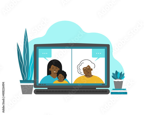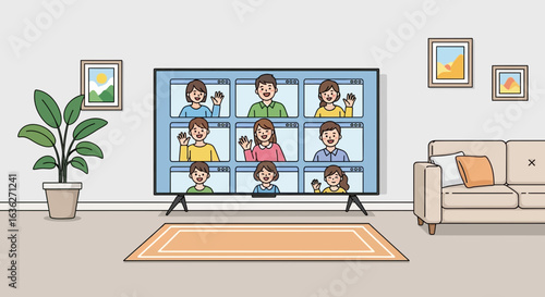 Онлайн-класс в телеконференции zoom. Векторная иллюстрация концепции виртуального школьного образования. Студенты с ноутбуками слушают учителя онлайн. Дистанционный класс.