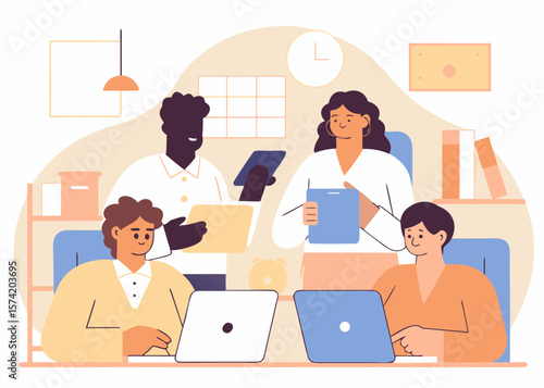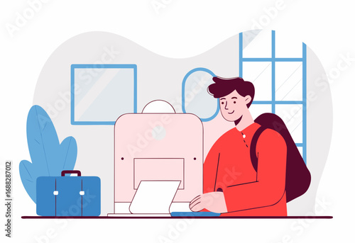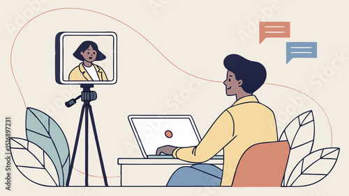 Онлайн-разговор между молодой парой через Интернет, плоская векторная иллюстрация. Люди с пузырьками чата, отправляющие и получающие сообщения в конвертах. Онлайн-общение.
