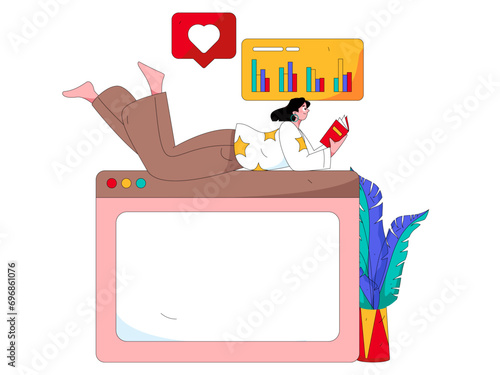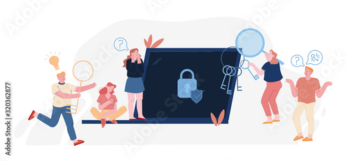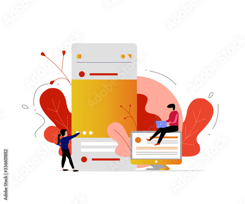 Векторная иллюстрация большого планшета и персонажей, отправляющих текстовые сообщения с помощью гаджетов. Онлайн-переписка, общение в чате, лайки через социальные сети, концепции подключения Wi-Fi для страницы веб-баннера веб-сайта