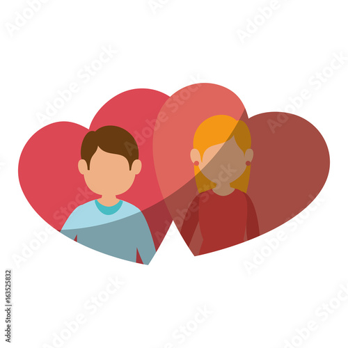 Два красных сердца с мальчиком и девочкой в чате, знакомство с помощью мобильных телефонов, векторная иллюстрация в стиле бумажного искусства. Концепция приложения для онлайн-знакомств.
