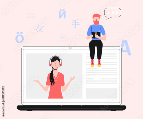 Служба онлайн-знакомств, плоская векторная изометрическая иллюстрация. Мужчина, стоящий на коленях, дарит букет цветов девушке со смартфона. Виртуальные любовные отношения.