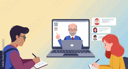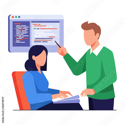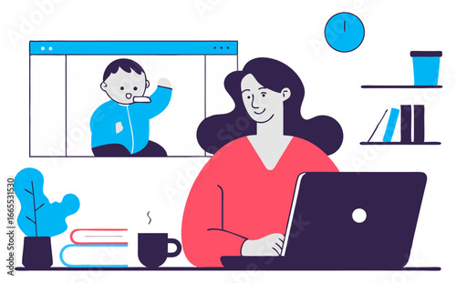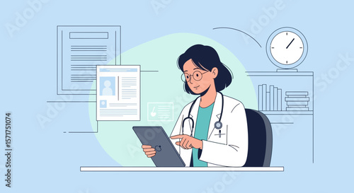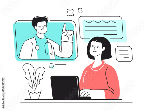 Онлайн-врач, помогающий пациентке-женщине с экрана компьютера, плоская векторная иллюстрация. Удаленная медицинская консультация, телемедицина.