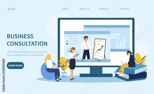 Концепция онлайн-образования. Два студента изучают видеоурок онлайн-курса. Векторный шаблон дизайна веб-сайта. Иллюстрация концепции веб-сайта целевой страницы.