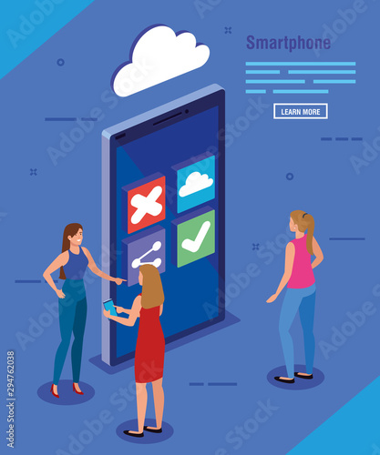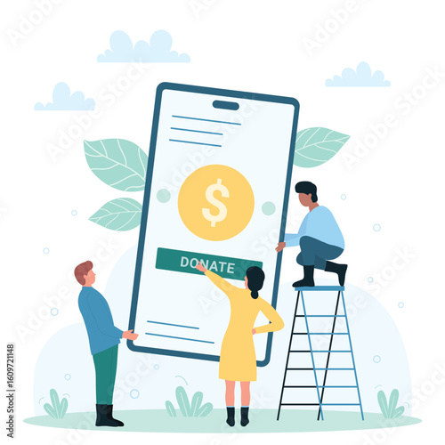 Интернет-магазин свежих и полезных фруктов и овощей, векторная иллюстрация. Огромный смартфон с приложением для покупок продуктов и микросимволами. Онлайн фермерский рынок и концепция доставки местных продуктов питания для баннера и т.Д
