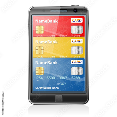 Огромный смартфон с киоском уличной еды, кредитной картой, навигационной картой на экране, векторной плоской иллюстрацией. Онлайн-заказ и доставка фаст-фуда, электронные платежи с мобильного телефона.