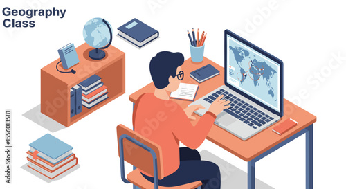 Векторная иллюстрация онлайн-бронирования авиабилетов. Человек, использующий компьютер и интернет для бронирования билета. Элемент дизайна в плоском стиле для людей в аэропорту, значок, выделенный на белом фоне.