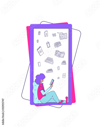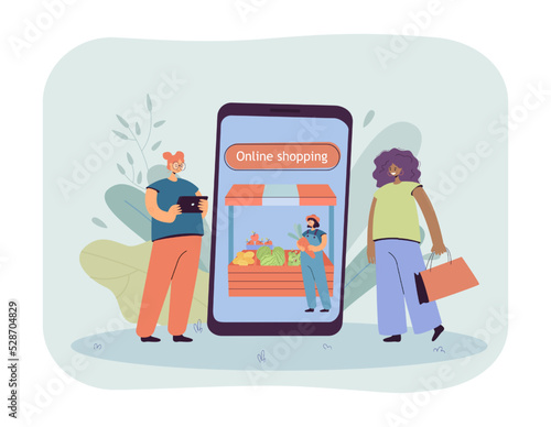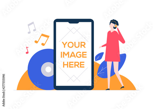 Векторная иллюстрация концепции онлайн-бронирования гостиничных номеров. Композиция для поиска и бронирования жилья с микро-мужскими и женскими персонажами и огромным смартфоном для веб-баннера, страницы веб-сайта и т.д.