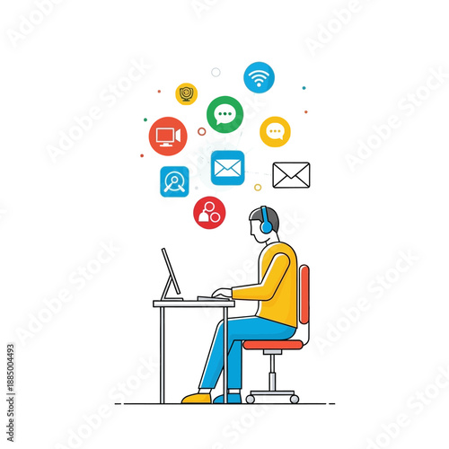 Онлайн-собеседование при приеме на работу, векторная плоская изометрическая иллюстрация. Работодатель и кандидат на работу общаются друг с другом, используя подключение к Интернету и портативный компьютер. Онлайн-подбор персонала, чат видеозвонков.