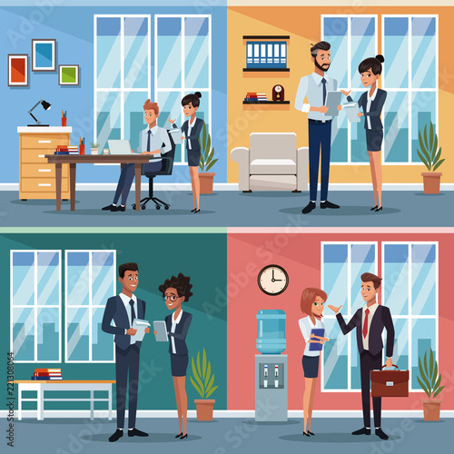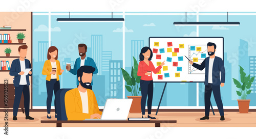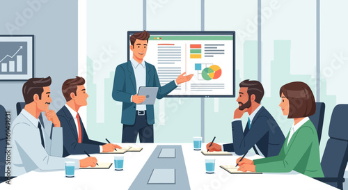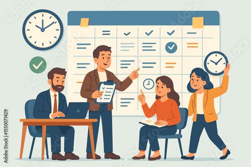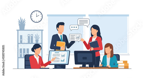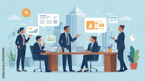 Онлайн-собеседование по видеосвязи при приеме на работу, векторная плоская иллюстрация. Прямой чат между работодателем, менеджером по персоналу и кандидатом на работу. Виртуальное мероприятие по подбору персонала.