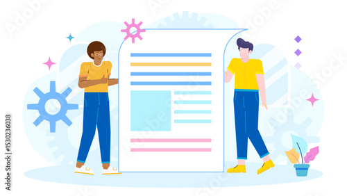 Онлайн-журнал шеф-повара, векторная иллюстрация дизайна в плоском стиле. Профессиональный фотограф фотографирует девушку, готовящую еду. Концепция журнального приложения для веб-баннера, страницы веб-сайта и т.д.