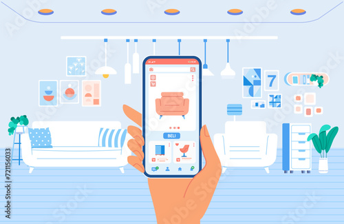 Онлайн-приложение для телефона для векторной иллюстрации медицинской помощи. Приложение для смартфона для заказа и покупки лекарств. Телефон экстренной помощи в руке человека с дизайном аптечки первой помощи