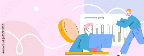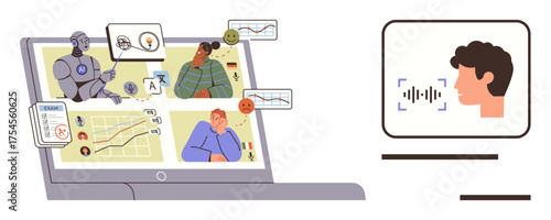 Онлайн-служба психологической помощи, векторная плоская иллюстрация. Сеанс психотерапии с профессиональным онлайн-консультантом психотерапевт консультирует пациентку женского пола, имеющую эмоциональные, семейные проблемы и т.д.