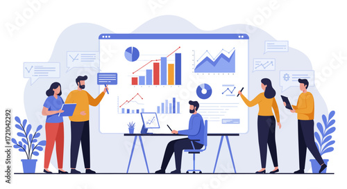 Менеджер по персоналу ищет кандидата на работу за компьютером с увеличительным стеклом, плоская векторная иллюстрация. Онлайн-рекрутинг, наем персонала, человеческие ресурсы, трудоустройство. Электронный набор персонала или рекрутинг через Интернет