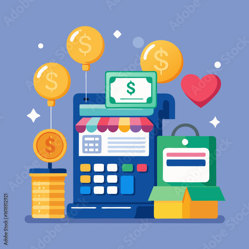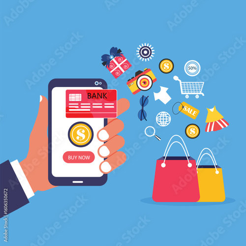Векторная 3d-иллюстрация акции со скидкой на онлайн-распродажу. Интернет-магазин, предлагающий подарки и бонусы за покупку. Виртуальное приложение на смартфоне. Коммерческая маркетинговая кампания