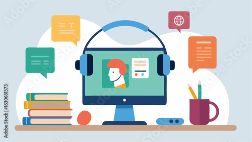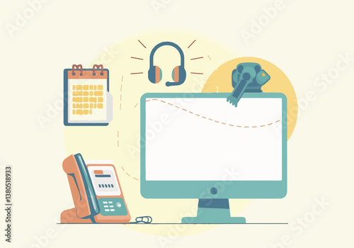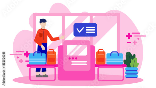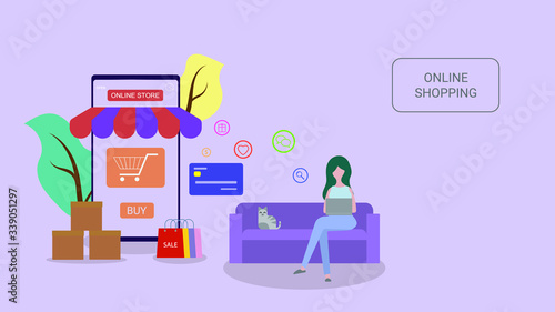 Онлайн-образование, векторная плоская иллюстрация. Крошечные персонажи- студенты, стоящие на огромном рюкзаке, лестнице, держащие книгу, карандаш, толкающие тележку с мобильным телефоном. Дистанционное обучение, электронное обучение, дистанционное образование.