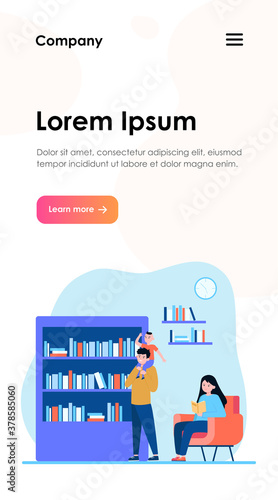 Векторный шаблон целевой страницы службы доставки интернет-магазина. Плоские мультяшные люди заказывают еду и одежду в Интернете, используя мобильное приложение и иллюстрацию интернет-магазина. Шопинг и доставка покупок