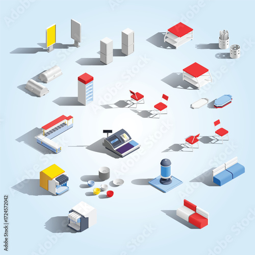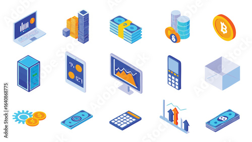 Набор изометрических значков интернет-магазина, плоская векторная изолированная иллюстрация. Распродажи и скидки, Черная пятница, маркетинговая стратегия интернет-магазина, мобильные платежи, электронная коммерция.