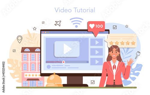 Онлайн-покупки в Интернете с помощью мобильного смартфона. Векторная иллюстрация концепции быстрой доставки в плоском дизайне. Курьер остается у двери магазина, которая выглядит как телефон, и передает посылку покупателю.