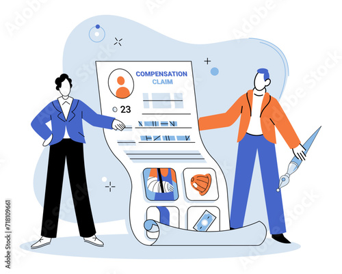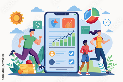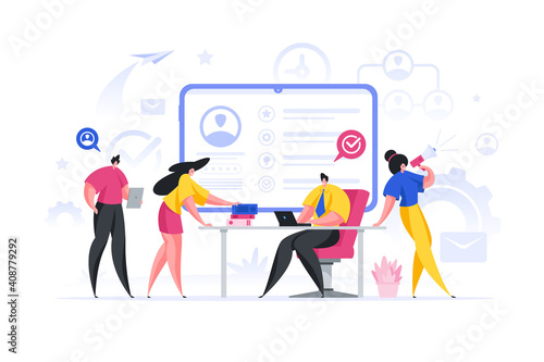 Интернет-магазины, векторная иллюстрация. Огромный планшет и микро-персонажи мужского и женского пола, покупающие одежду в Интернете. Интернет-магазин, композиция для электронной коммерции для веб-баннера, страницы веб-сайта и т.д.