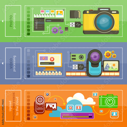 Векторный набор горизонтальных баннеров с интернет-магазином, онлайн-приложениями, элементами дизайна в плоском стиле Call-центра, веб-шаблонами.