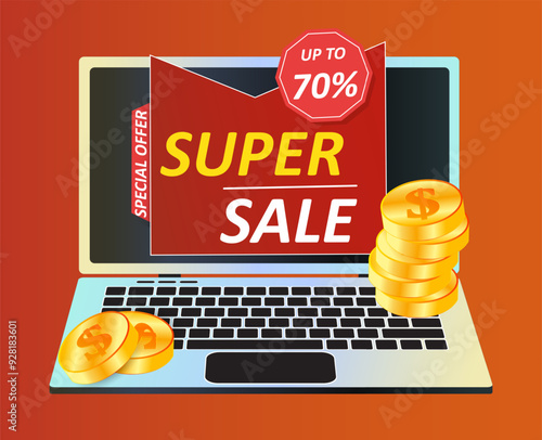 Шаблон дизайна векторного плаката для ставок на спорт онлайн. Ноутбук и футбольные баскетбольные мячи, секундомер, хоккейная шайба, желтые и красные судейские карточки, кубок для вручения трофеев и долларовые монеты.