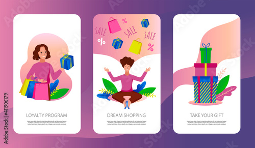 Экраны загрузки веб-сайта интернет-магазина и мобильного приложения. Векторный шаблон баннера меню для разработки веб-сайтов и приложений с градиентными динамическими жидкими абстрактными формами.