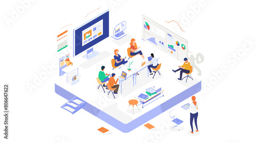 Онлайн-обучение и репетиторство, плоская векторная изометрическая иллюстрация. Вебинар, онлайн-образование, семинар, дистанционное обучение, дистанционное обучение.