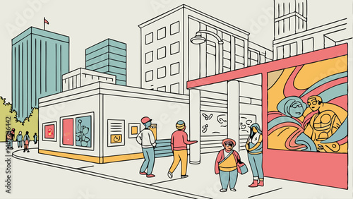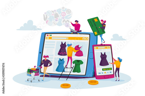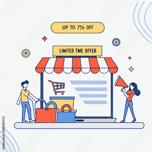 Торговля от онлайн до оффлайн, векторная плоская иллюстрация. Бизнес-стратегия розничной торговли и электронной коммерции O2O. Потенциальные онлайн-потребители, совершающие покупки в физических магазинах.