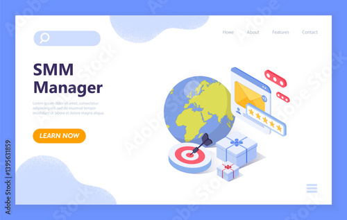 Шаблон веб-сайта целевой страницы онлайн-обучения. Векторная изометрическая иллюстрация. Концепция онлайн-вебинара, электронного обучения, дистанционного образования, видеоуроков.