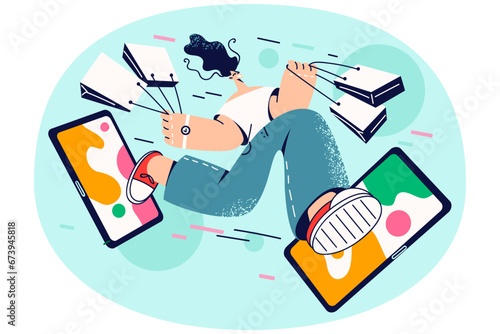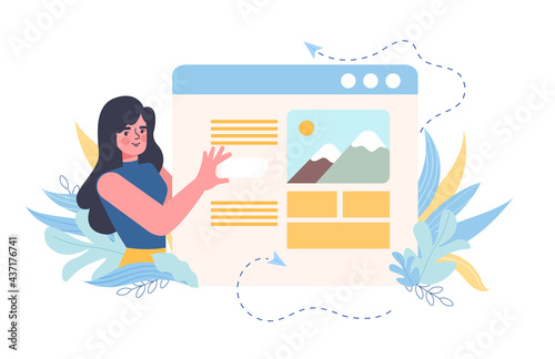 Молодая женщина, практикующая йогу дома, используя смартфон с мобильным приложением yoga, векторная иллюстрация дизайна в плоском стиле. Онлайн-коучинг, здоровый образ жизни.
