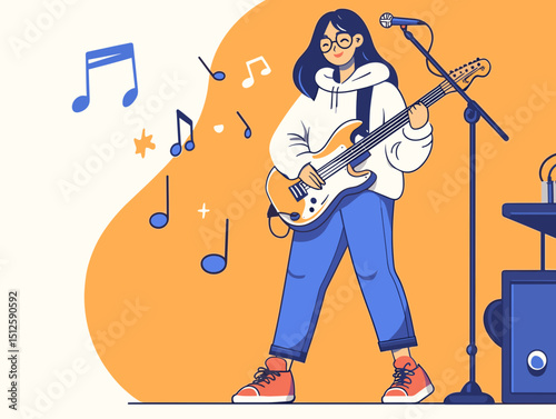 Концерт под открытым небом в рекламном листовке Центрального парка. Публичное музыкальное представление, векторная иллюстрация продвижения художественной вечеринки в лагере на свежем воздухе.
